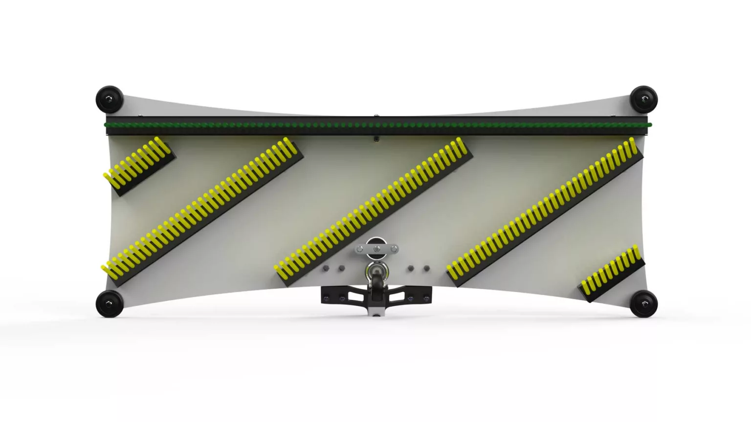 Les quatre roulettes positionnées aux angles protègent les parois vitrées lors de l’entretien des bords du terrain. Elles facilitent également le déplacement de la Padel Brush sans nécessiter de la soulever, améliorant ainsi son maniement et son efficacité d’utilisation.